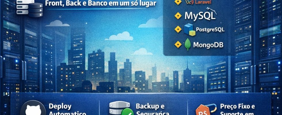 Enquanto muitas plataformas dividem serviços (frontend, backend e banco separados), a Cloudx centraliza tudo em uma única plataforma: